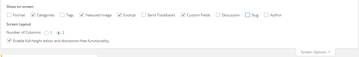 Tìm nút Screen Options ở góc phải màn hình , click vào và chọn như hình.